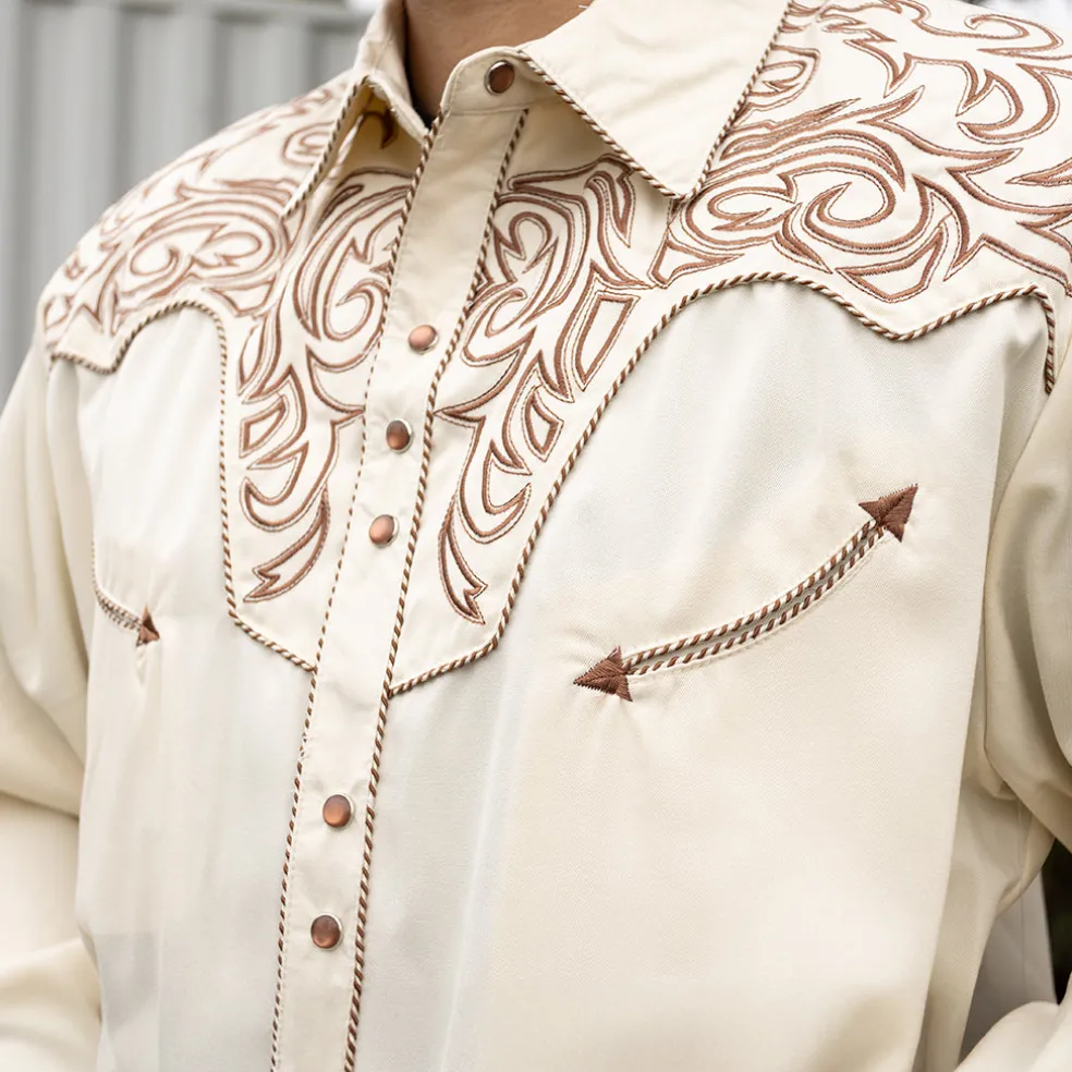 Embroidered Scroll Shirt Cream