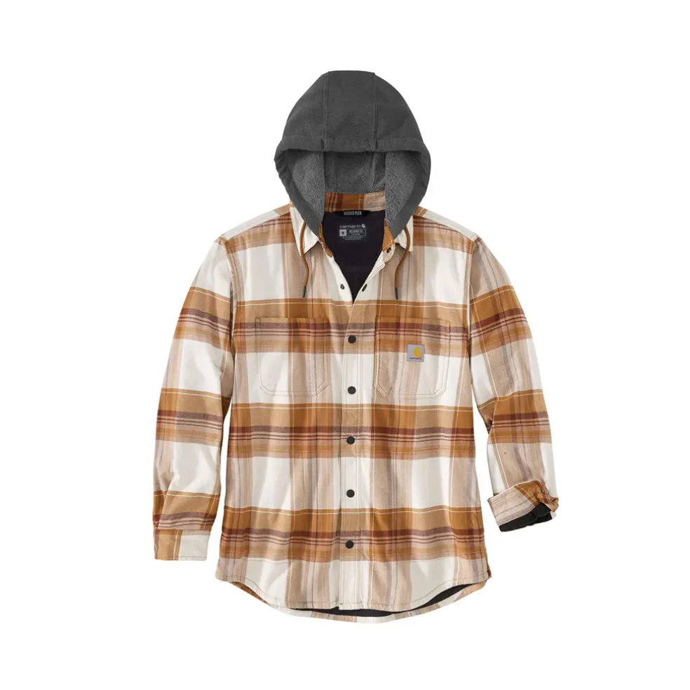 Flannel Fleece Lined Hooded Shirt Jacket Carhart Brown