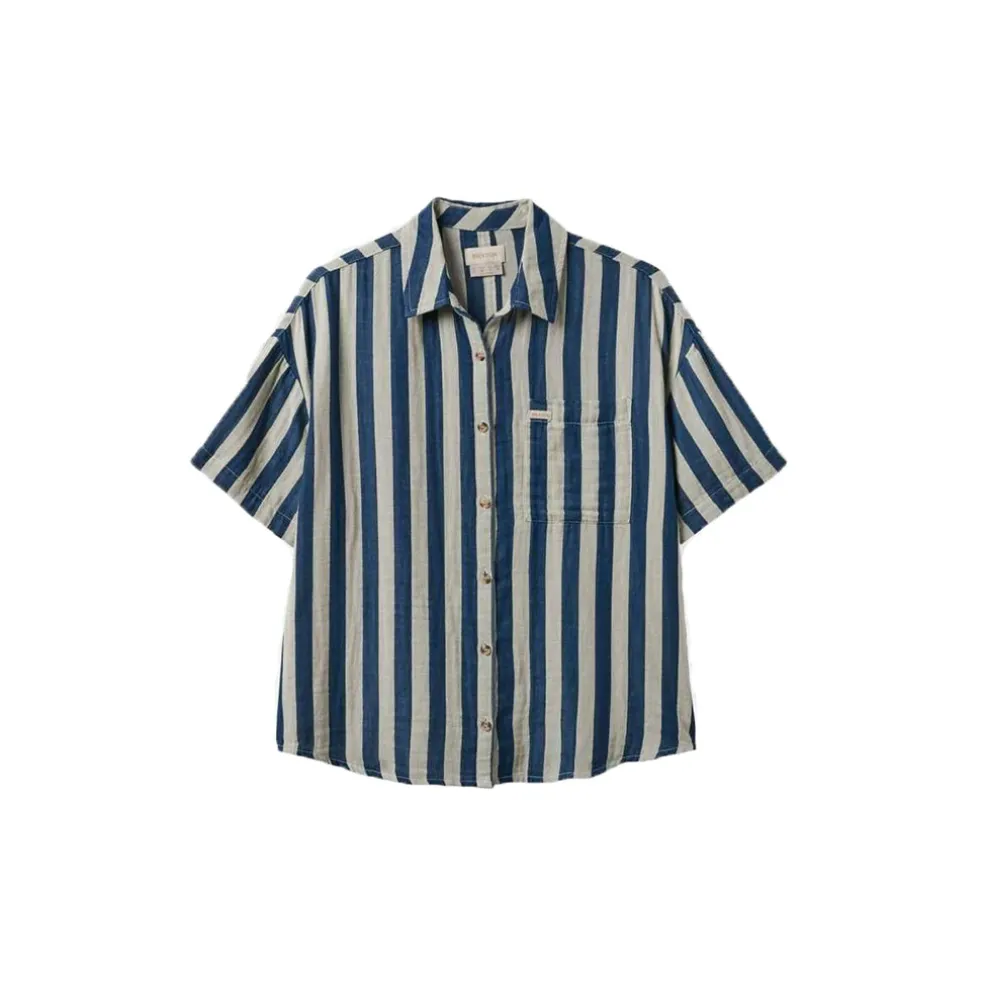 Mykonos Stripe Boyfriend S/S Woven Shirt Deep Sea Blue